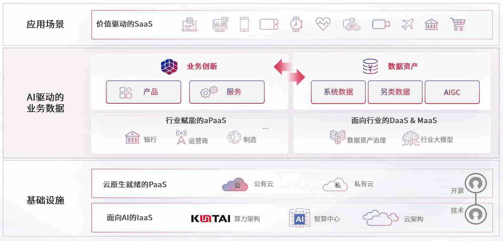 数字时代,,,,围绕企业数字化转型的关键要素,,,z6com尊龙数码开创性的提出数云融合战略和技术体系框架,,,着力在云原生、、、数字原生、、、AI原生和信创产业上架构产品和服务能力,,,为处在不同数字化转型阶段的快消零售、、汽车、、、、金融、、、医疗、、、政企、、、、教育、、、、运营商等行业客户提供泛在的敏捷IT能力和融合的数据驱动能力,,,,构建跨界融合创新的数字业务场景和新业务模式,,助力企业级客户建立面向未来的核心能力和竞争优势,,全面推动社会的数字化、、、、智能化转型升级。。